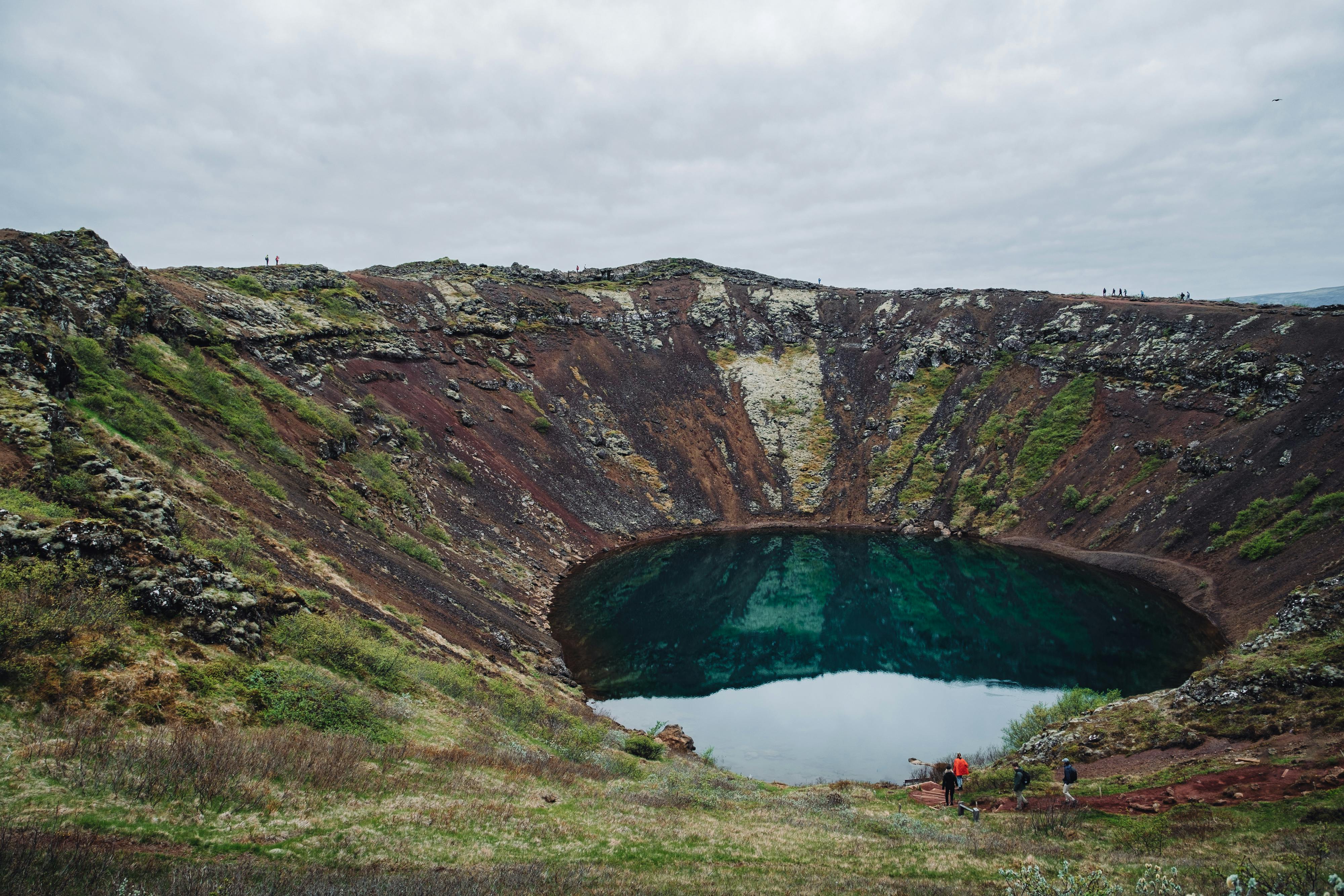 A large crater in the middle of a grassy field
